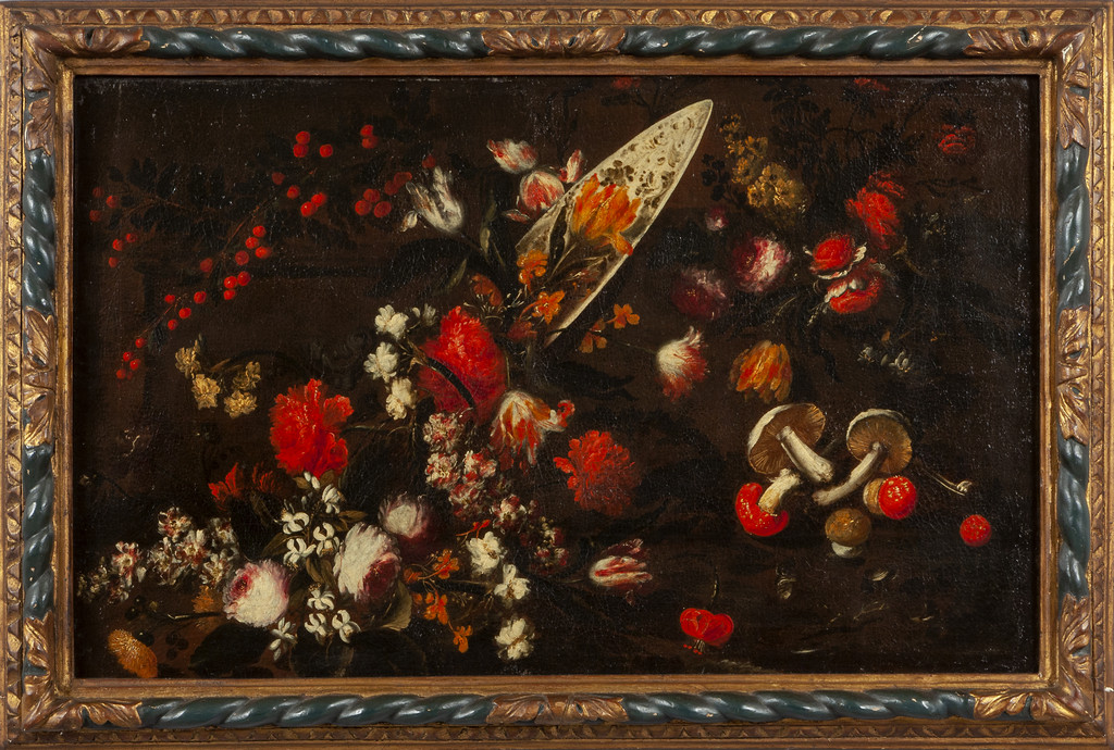 Scuola lombarda sec.XVII (Margherita Caffi) 'Natura morta con funghi' olio