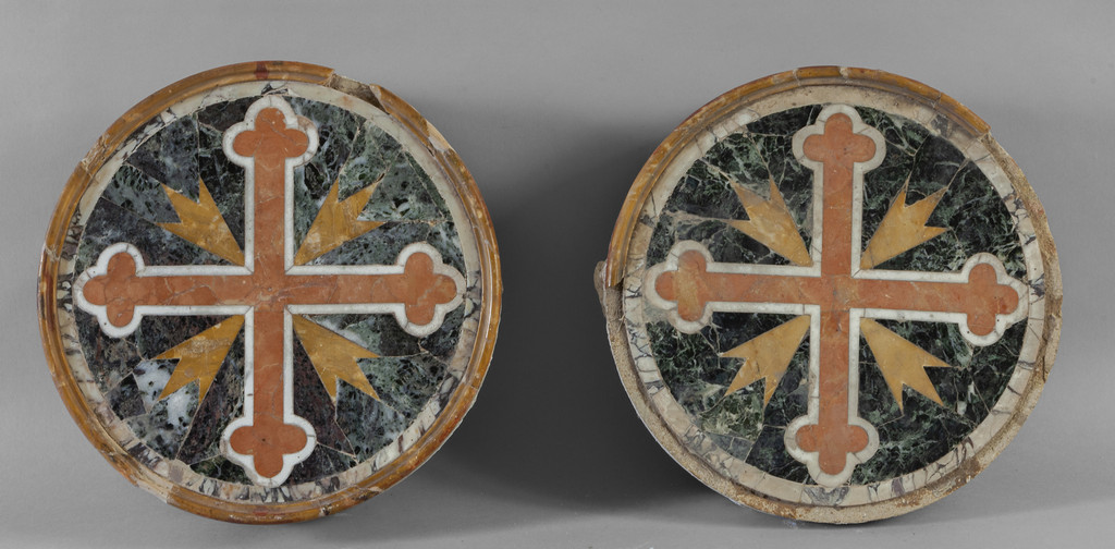 Coppia di tondi in marmo intarsiati in marmi policromi Centro Italia sec.XVII