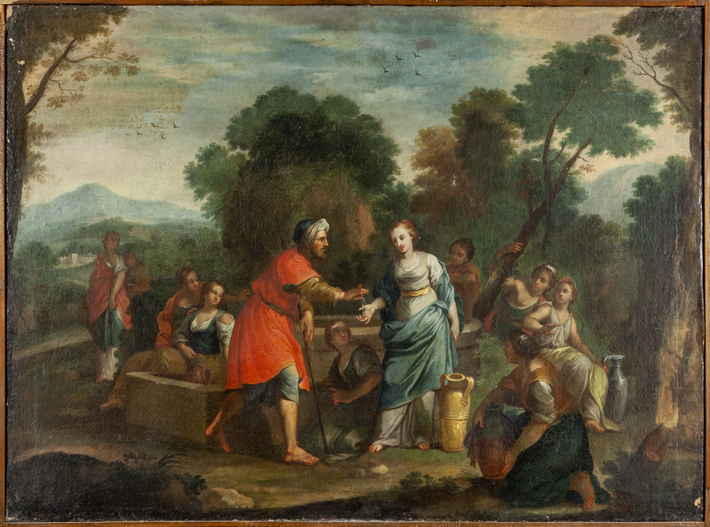 Scuola veneta sec.XVIII'L'incontro di Eliezer e Rebecca al pozzo' olio