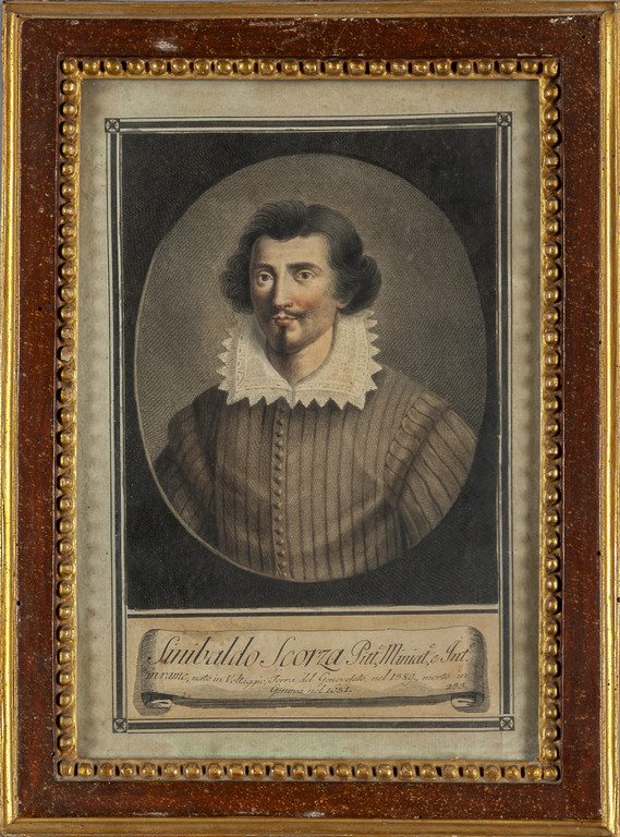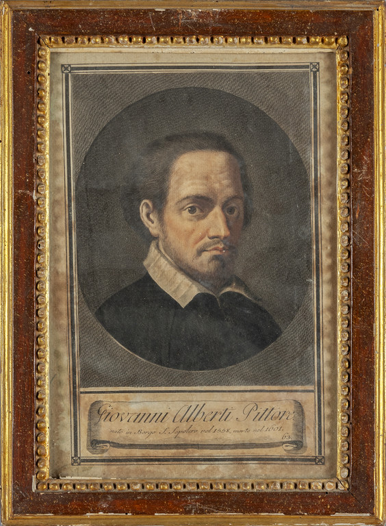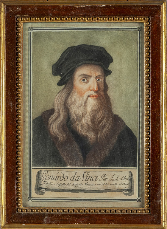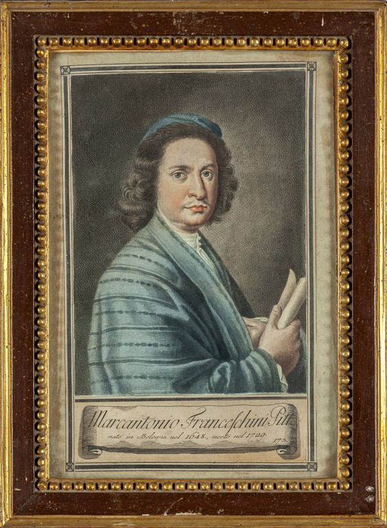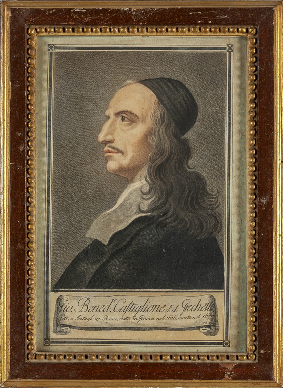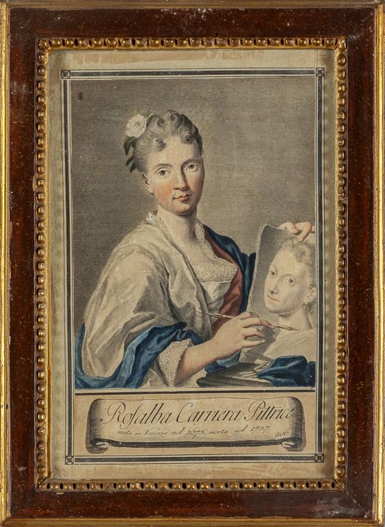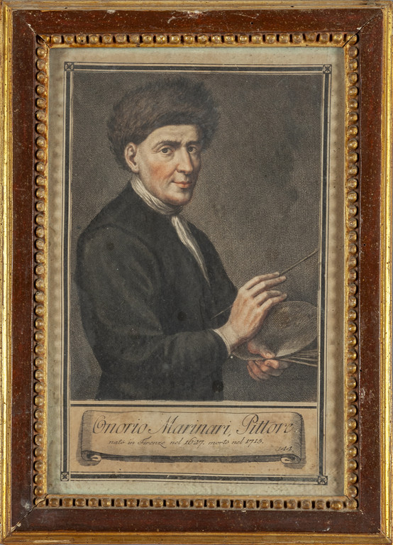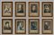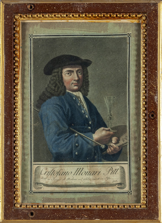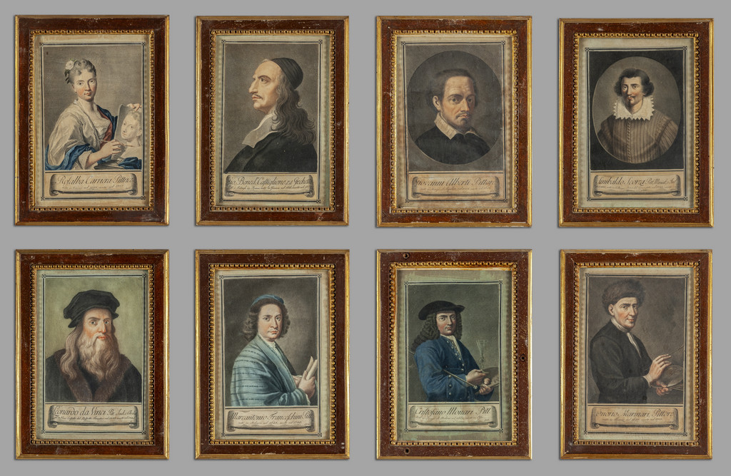 'Ritratti di pittori' otto stampe acquarellate cornici in legno dipinto a finto porfido sec.XVIII