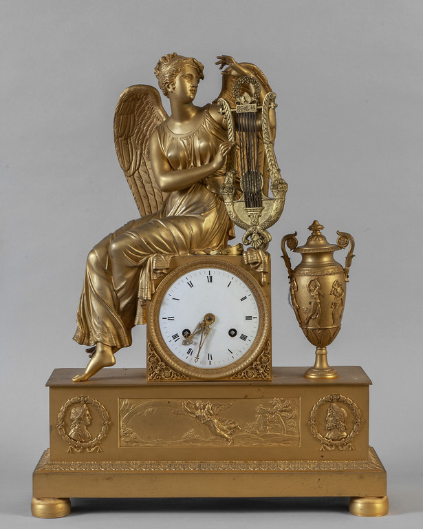 Grande orologio Carlo X in bronzo dorato con figura alata con cetra sec.XIX