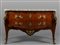 Comò Napoleone III a due cassetti lastronato in palissandro e legno di rosa applicazioni in bronzo dorato piano in marmo Francia fine sec.XIX