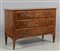 Comò Luigi XVI a tre cassetti in noce lastronato ed intarsiato con medaglione centrale e filetti in bois de rose ripetuti anche sui fianchi piano in legno Piemonte II metà sec.XVIII
