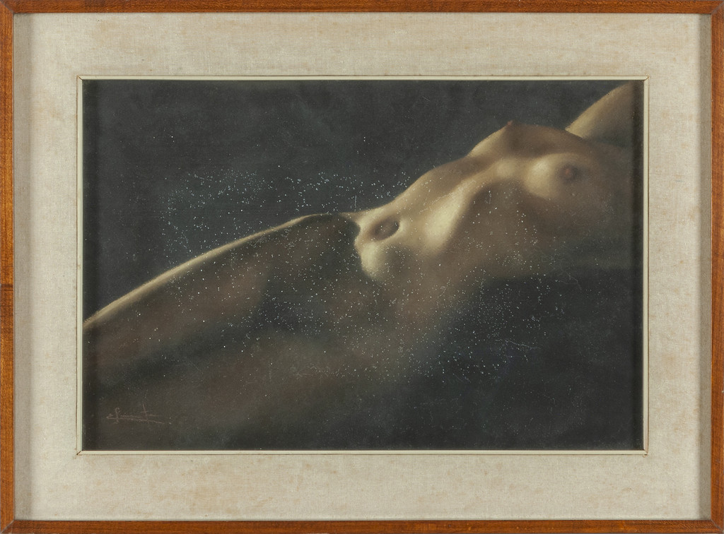 Scuola italiana sec.XX 'Nudo di donna' olio f.to in b.a sn.