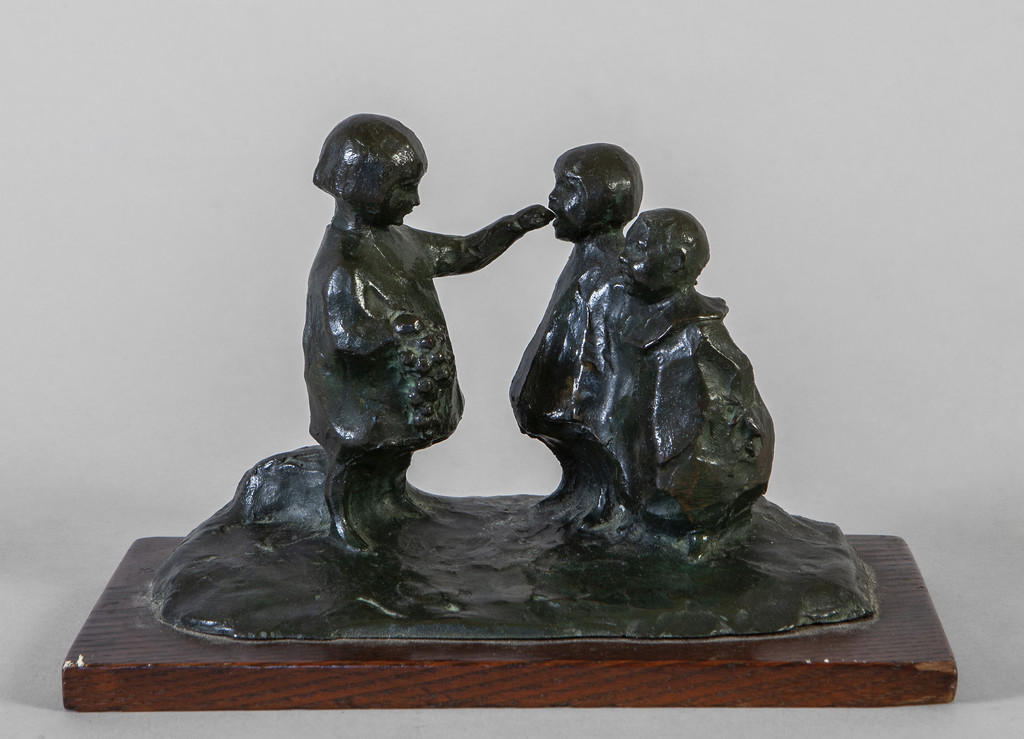 Giochi di bimbi bronzetto a patina scura f.to alla base