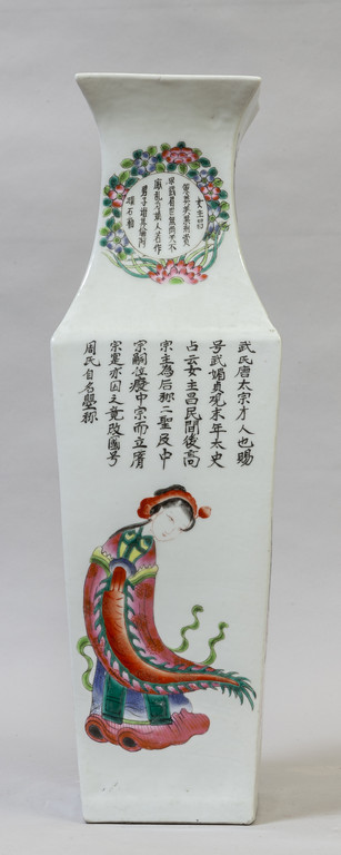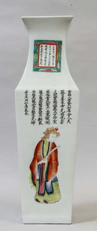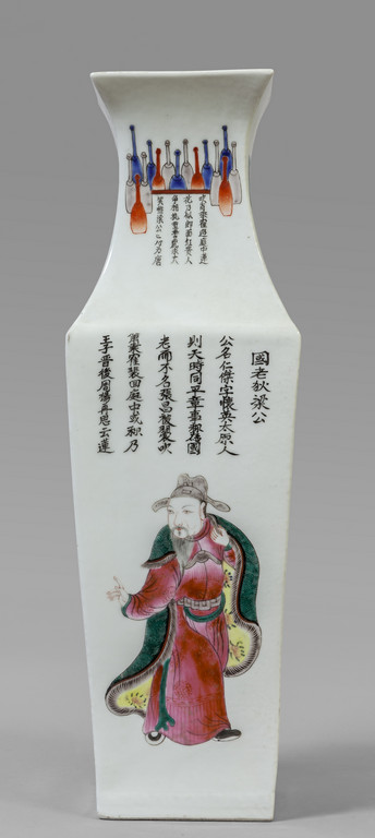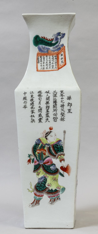 Vaso in porcellana di forma quadrata decorato con personaggi cinesi fine sec.XIX/inizi sec.XX