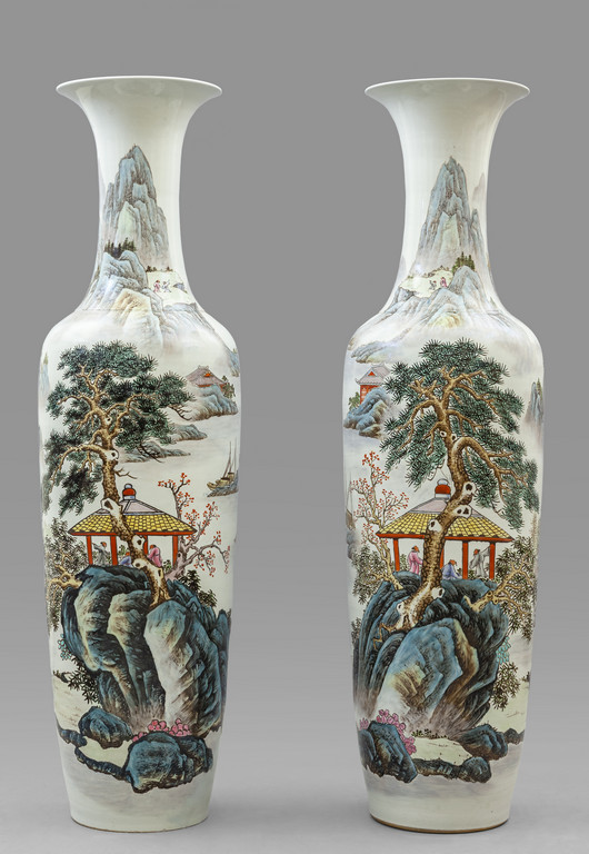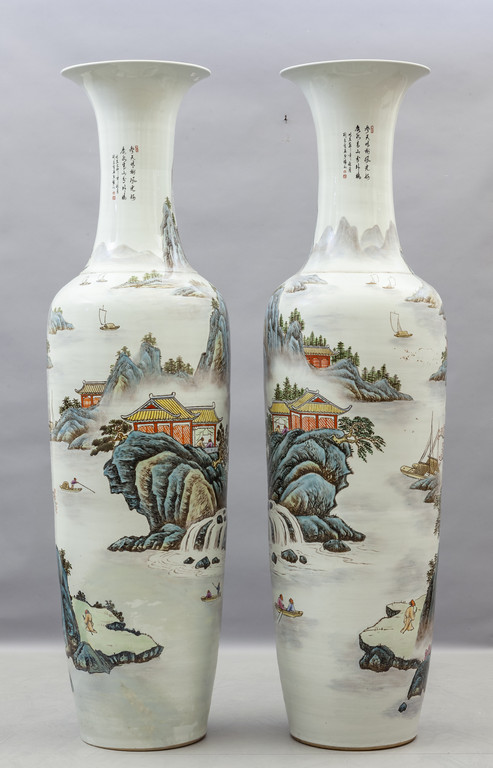 Coppia di grandi vasi in porcellana decorati in policromia Cina sec.XX