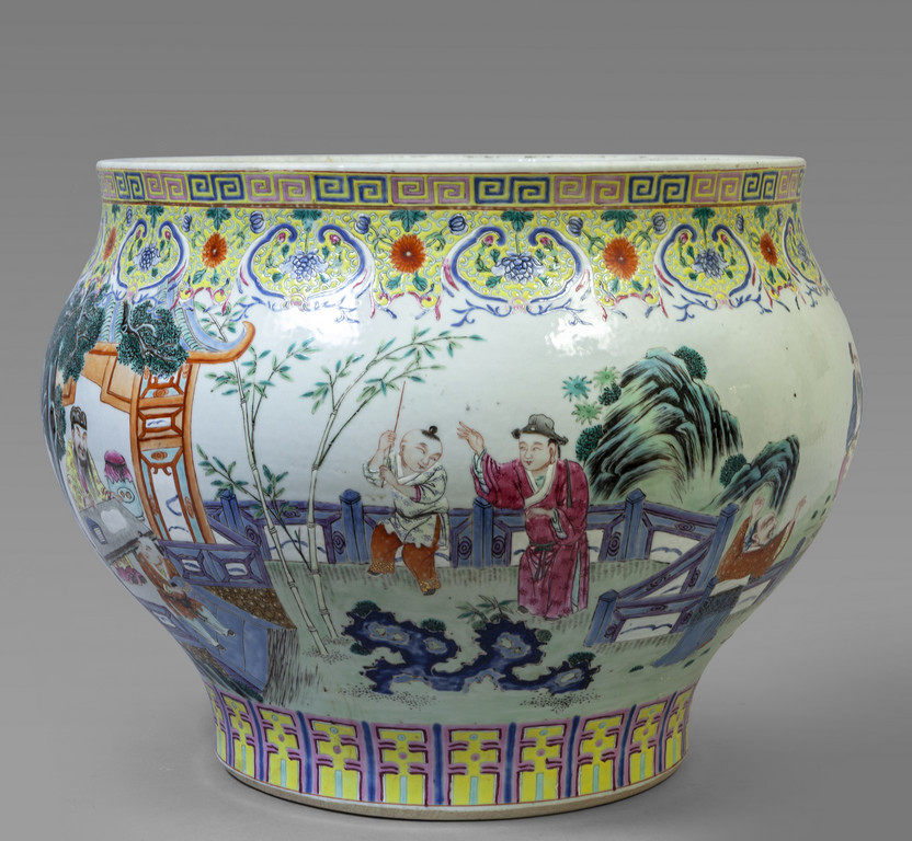 Cachepot in porcellana decorazione con dignitari fine sec.XIX