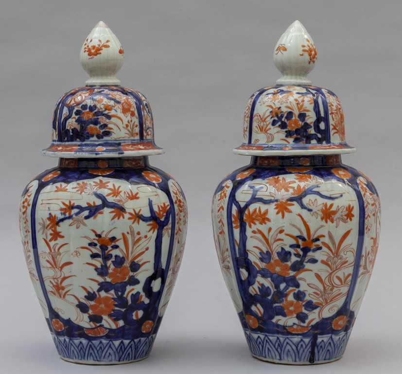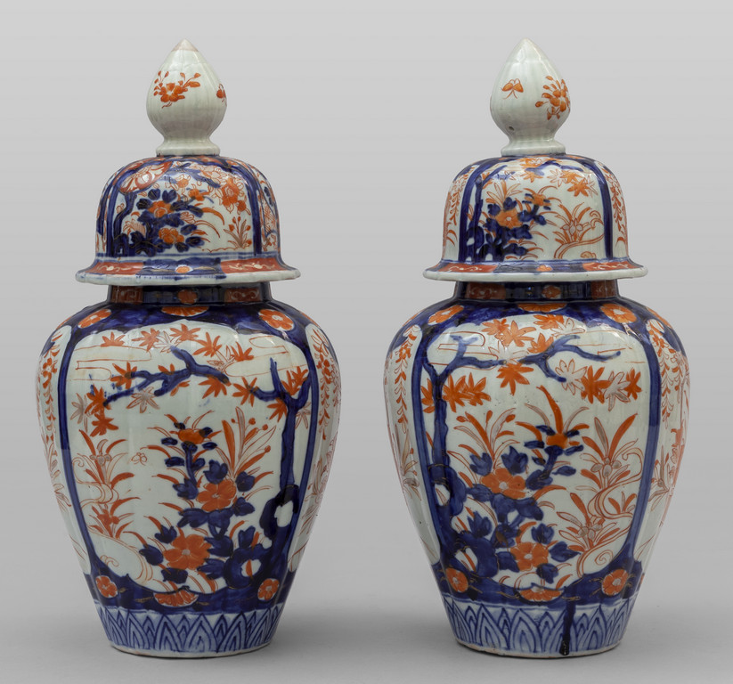 Coppia di potiches in porcellana policroma Giappone inizi sec.XX