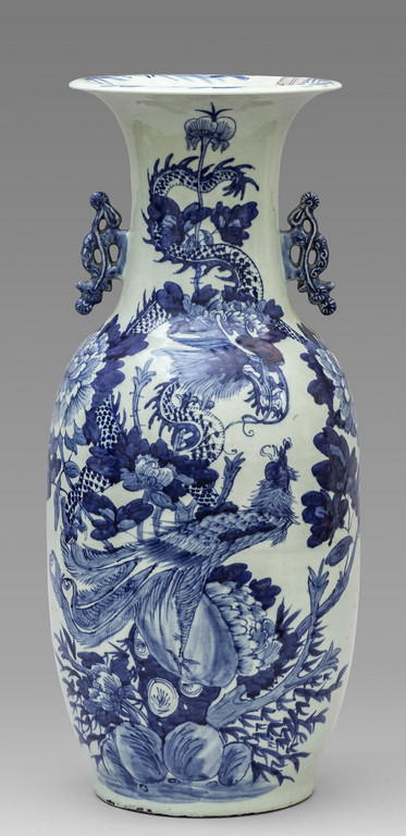 Vaso in porcellana di Cina decorato in bianco e blu con fiori uccelli e dragone fine sec.XIX