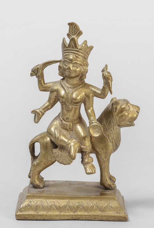 Durga su leone in bronzo dorato India del Sud sec.XVIII
