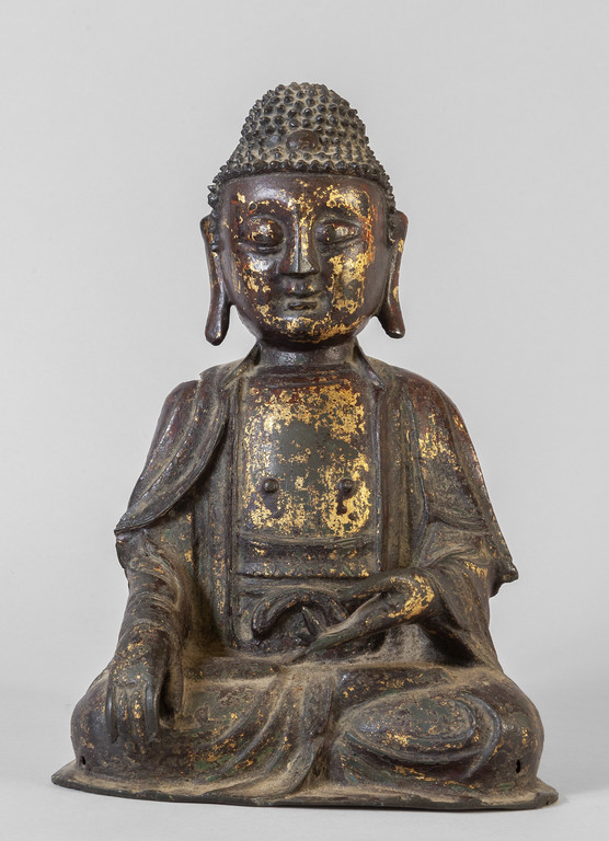 Buddha in bronzo con tracce di doratura a freddo epoca Ming Cina sec.XVI/XVII