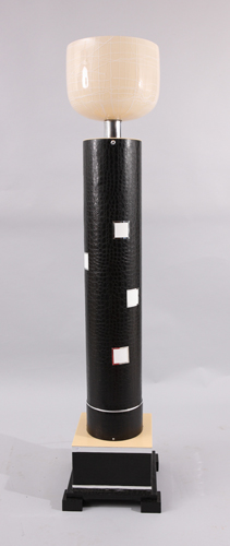 Lampada da terra a base quadrata con fusto cilindrico rivestito in pelle nera...