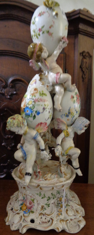 Putti con uova, scultura in ceramica di Bassano fine sec.XIX