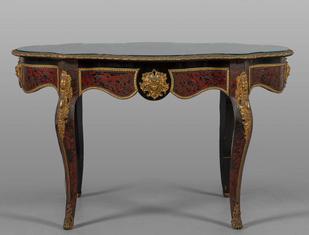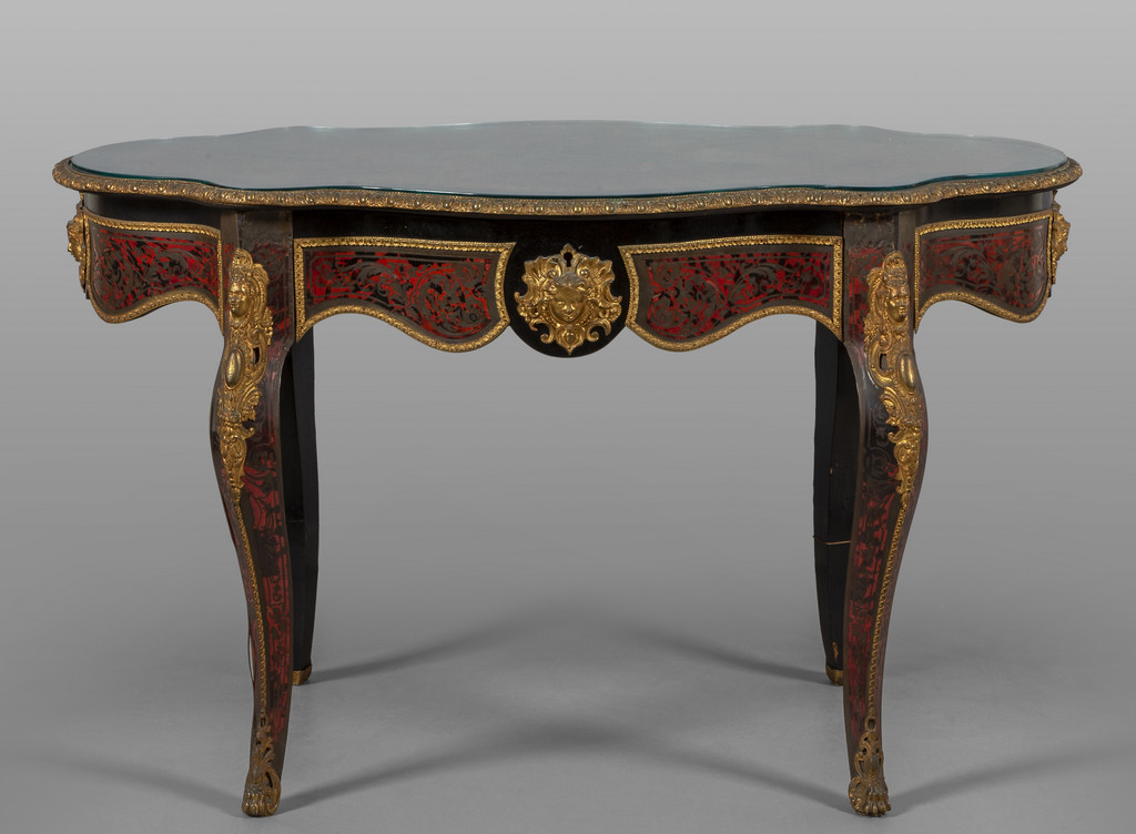 Tavolo da centro in stile Boulle lastronato in ebano lamierino e tartaruga Francia fine sec.XIX