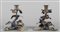 Coppia di candelieri in argento a foglie con applicazioni di pietre dure f.ti Devecchi