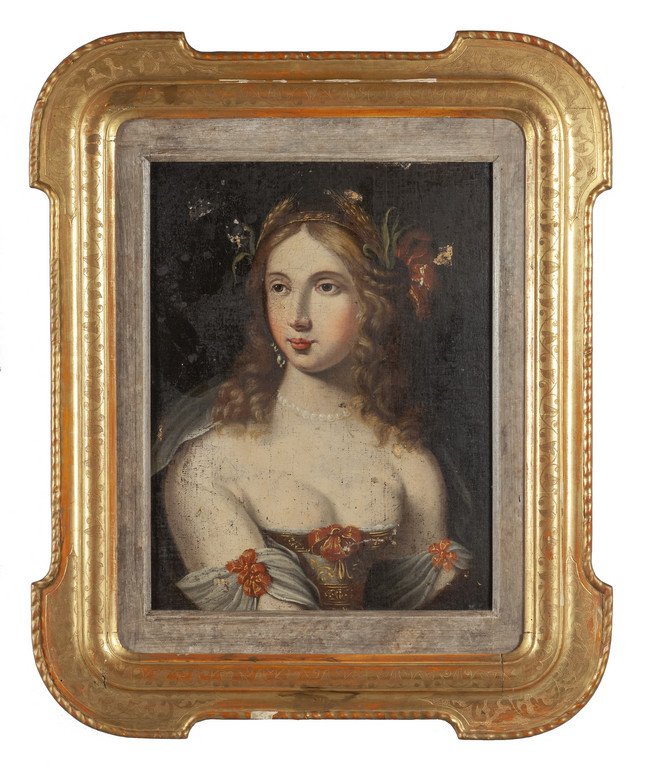 Scuola veneta sec.XVIII 'Ritratto di fanciulla con collana di perle' olio cornice Umbertina sec.XIX