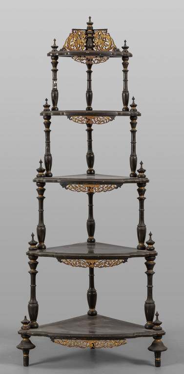 Etagere ad angolo in legno laccato a cineserie cinque ripiani sec.XIX