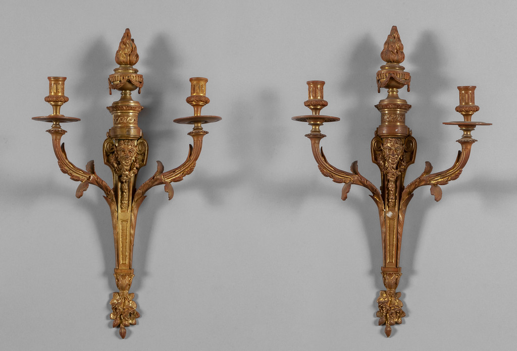 Coppia di grandi apliques in stile Luigi XVI in bronzo erme centrali sec.XX