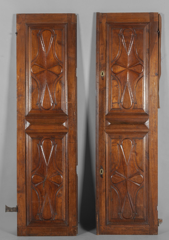 Coppia di ante Luigi XIV in noce intagliato con il motivo del cuore Genova I metà sec.XVIII