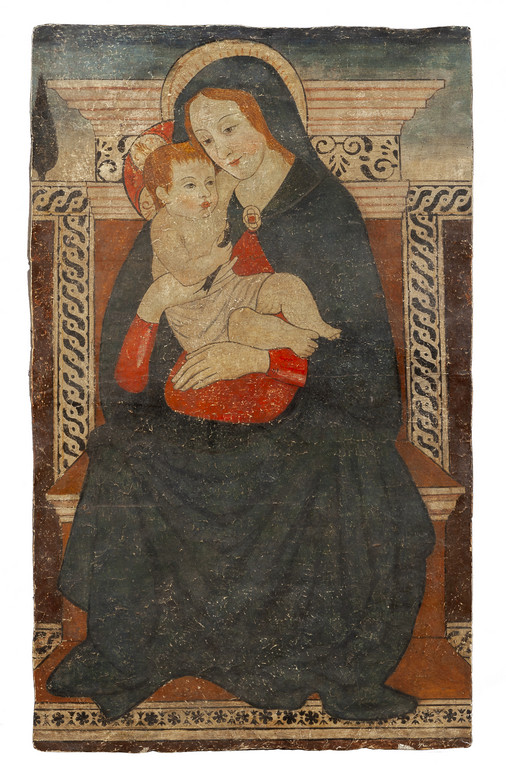 Scuola ferrarese sec.XV/XVI 'Madonna con Bambino' tempera su tavola