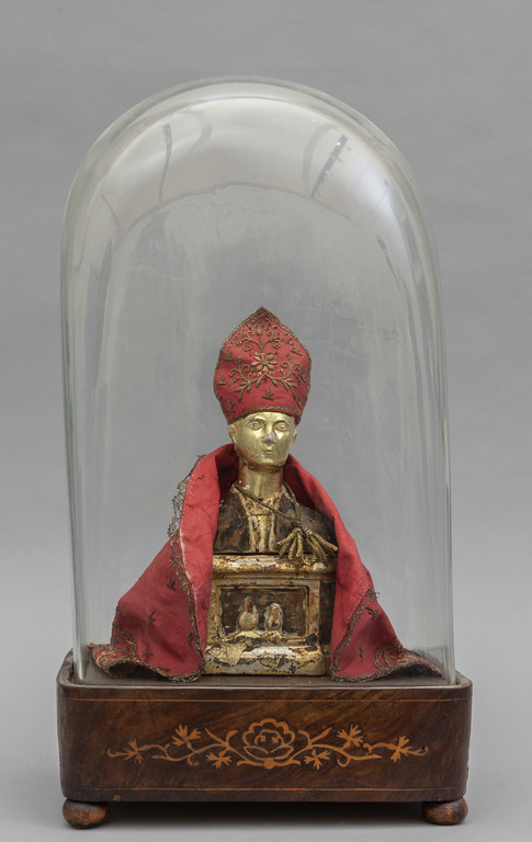 San Gennaro busto in legno intagliato e dorato sec.XVIII dentro teca Carlo X
