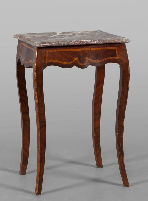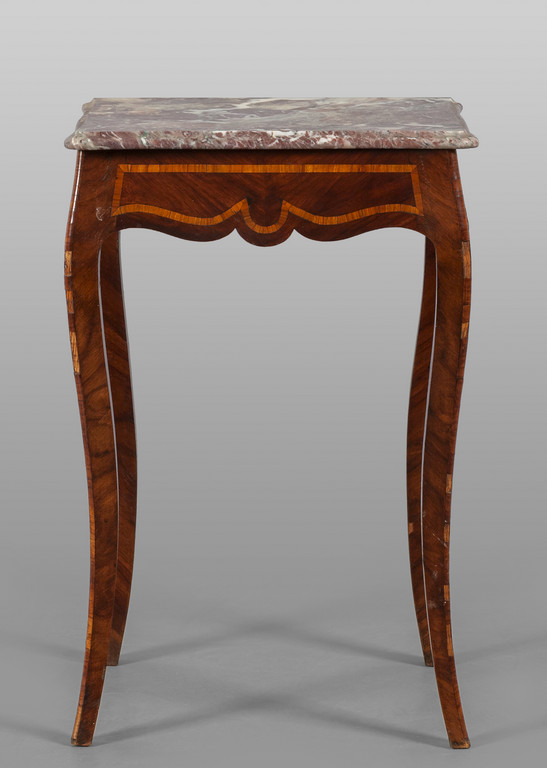 Tavolino da appoggio in stile Luigi XV lastronato in palissandro e bois de rose piano in marmo