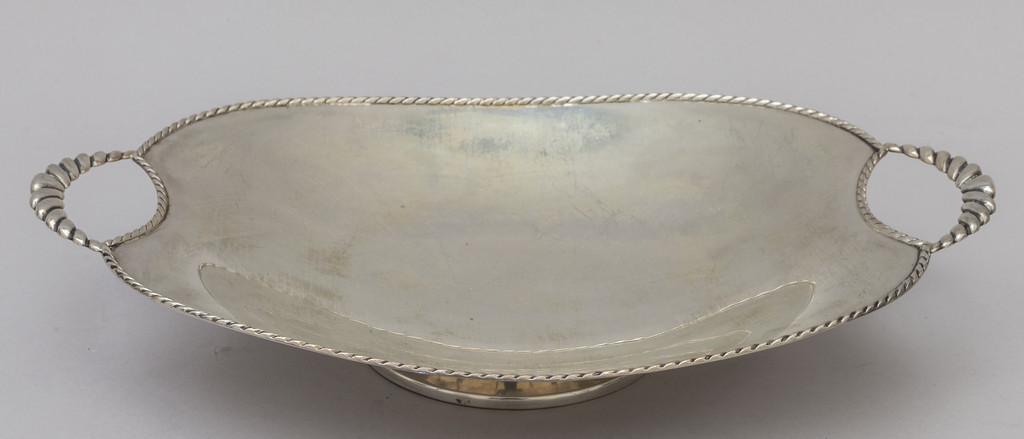 Alzata in argento con manici e bordo lavorato