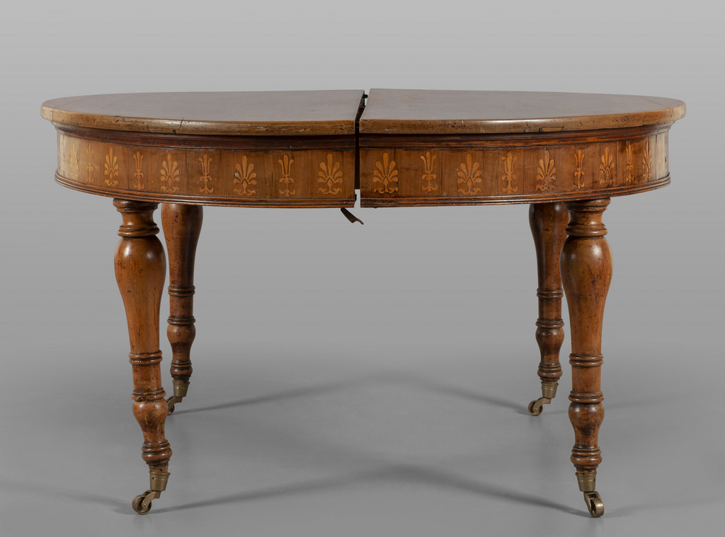 Tavolo allungabile in noce con fascia intarsiata a motivi di palmette Piemonte metà sec.XIX
