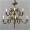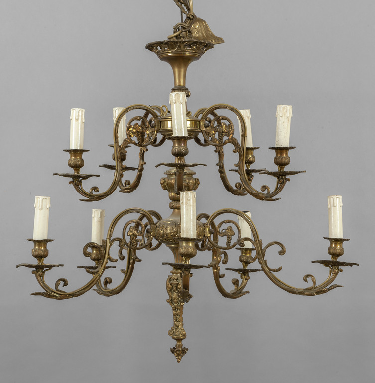 Lampadario in bronzo dorato a dieci luci disposte su due ordini