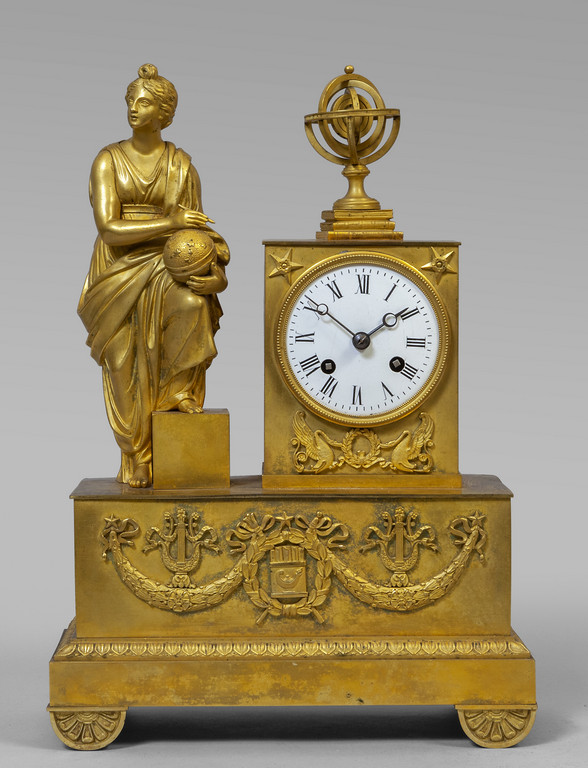 Orologio Carlo X in bronzo dorato sormontato da una figura femminile raffigurante l'Astronomia Francia sec.XIX