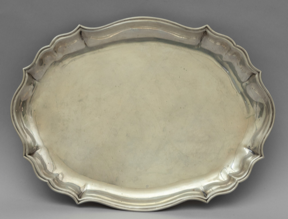 Previous Lot 1012 Next Aste Boetto - Via Mura dello Zerbino 10R, 16122 Genova Asta di antiquariato e Arte Orientale Asta di Antiquariato e Arte Orientale Tuesday 28 September 2021 hours 10:30 (UTC +01:00) OGGETTISTICA Vassoio in argento di forma mossacm.33x24 5 gr.475