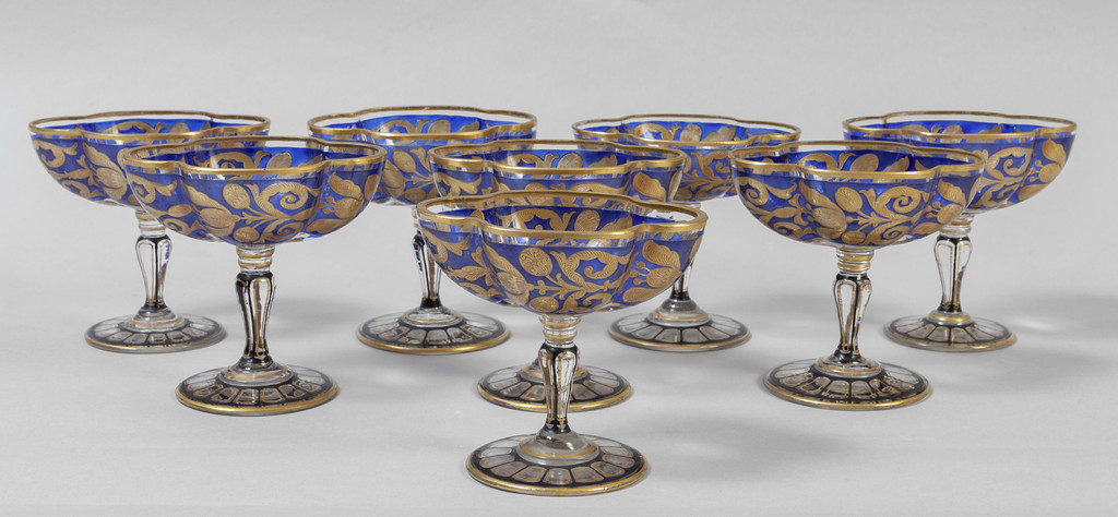 Previous Lot 1035 Next Aste Boetto - Via Mura dello Zerbino 10R, 16122 Genova Asta di antiquariato e Arte Orientale Asta di Antiquariato e Arte Orientale Tuesday 28 September 2021 hours 10:30 (UTC +01:00) OGGETTISTICA Otto coppe in cristallo blu decorate in oroh.cm.10