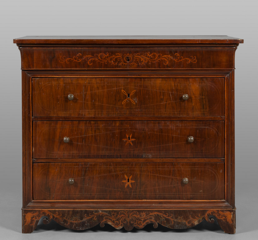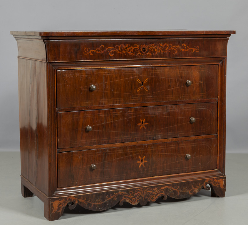 Comò Carlo X in mogano a tre cassetti più uno piano in legno sec.XIX