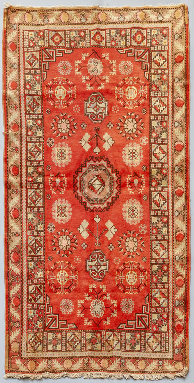 Tappeto caucasico su fondo rosso inizi sec.XX
