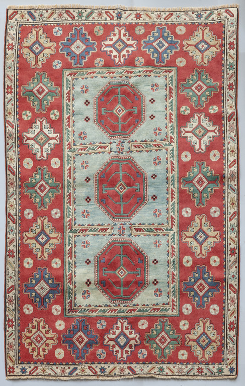 Tappeto caucasico su fondo rosso inizi sec.XX