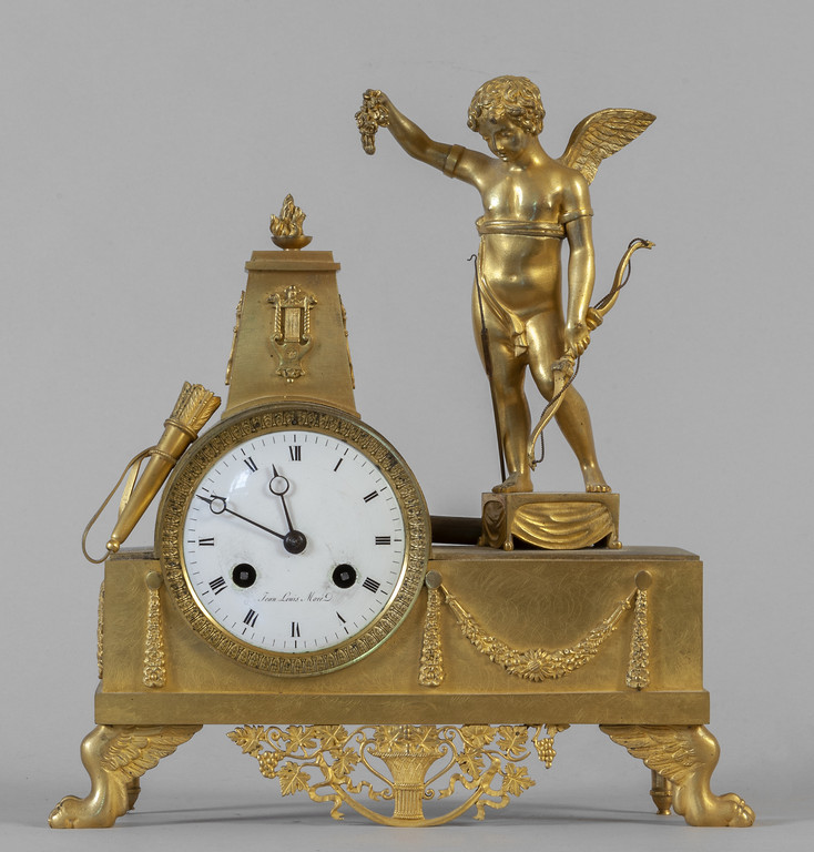 Orologio Carlo X in bronzo dorato sormontato da figura di Cupido quadrante f.to Jan Luois Morrè Francia sec.XIX