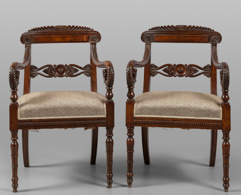 Coppia di poltrone finemente intagliate con sedile imbottito sec.XIX