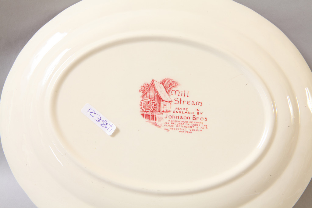 Servizio di piatti Mill Stream-Johnson Bros composto da 13 piatti piani 13 piatti fondi 12 piatti da frutta 1 zuppiera 2 salsiere 2 raviere 2 insalatiere grandi e 2 più piccole 2+2 piatti da portata ovali 1 piatto da portata rotondo 12 tazze da the con piattini 12 tazzine da caffè con piattini 1 theiera 2 lattiere 1 zuccheriera