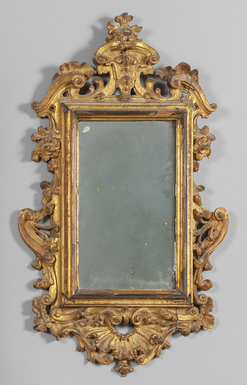 Specchiera Luigi XIV in legno finemente intagliato e dorato Italia Centrale sec.XVIII