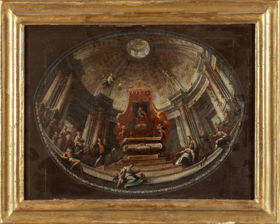 Scuola veneta sec.XVII 'Altare contornato da figure' bozzetto ad olio