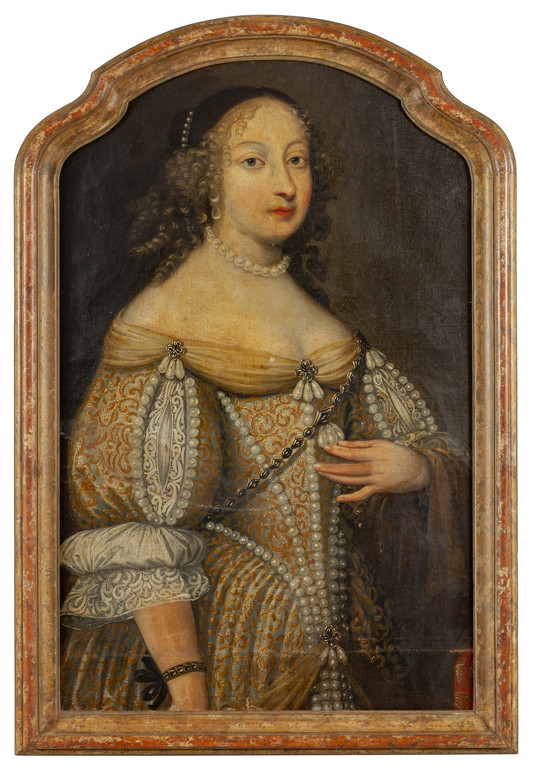Scuola piemontese sec.XVII 'Ritratto di dama con perle' olio