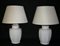 Coppia di lampade da tavolo in ceramica bianca firmate Tommaso Barbi, con paralumi. Alt. cm40