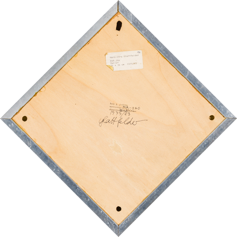 acrilico su polistirene, lati cm 30x30 diagonale cm 43,5 firma e data al verso timbro dell'Artista con titolo e misure al verso, cartiglio descrittivo al verso.