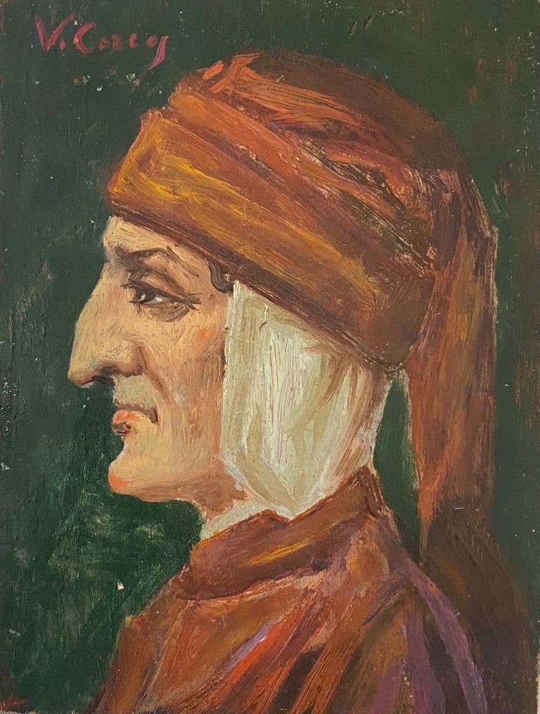 “Dante Alighieri” olio su tavoletta cm 23,2x17,3 firma in alto a sinistra.
