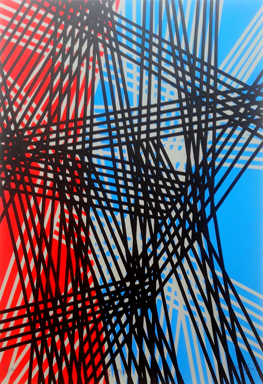 NIGRO MARIO Pistoia 1917-Livorno 1992 “Dramma nello spazio: tensione in libertà” Tavola n°9 serigrafia su cartoncino cm 33x48 del 1955/84. Firmata a matita sul fronte in basso a destra, tiratura 17/100 in basso a sinistra. A cura di Luciano Caramel.