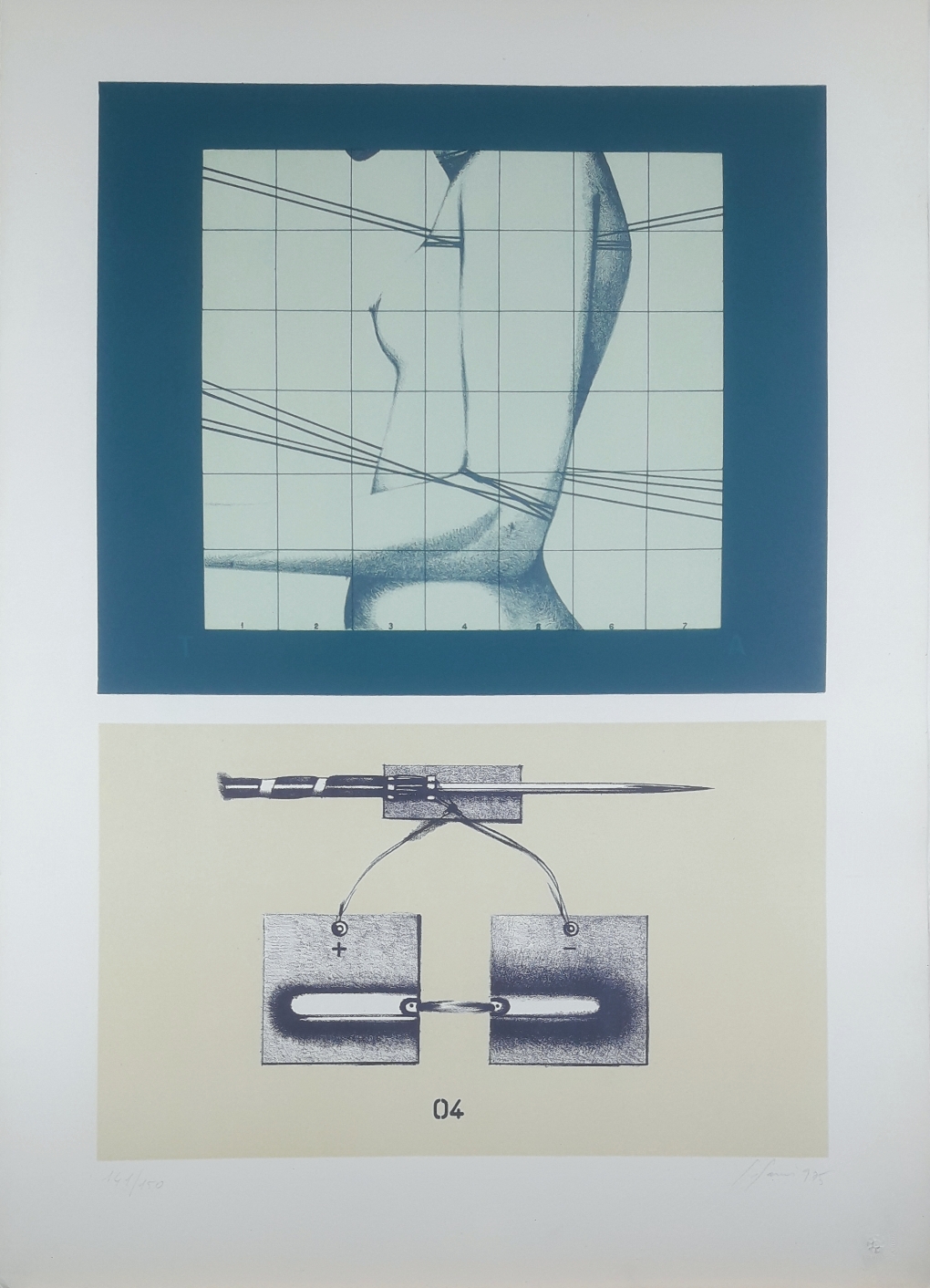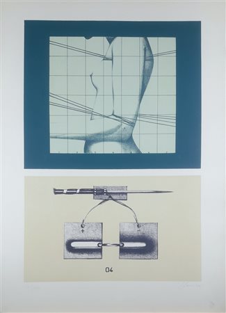 SARRI SERGIO Torino 1938 “Senza titolo” serigrafia su cartoncino cm 50x70 del 1975. Firmata e datata a matita sul fronte in basso a destra, tiratura 141/150 a sinistra.