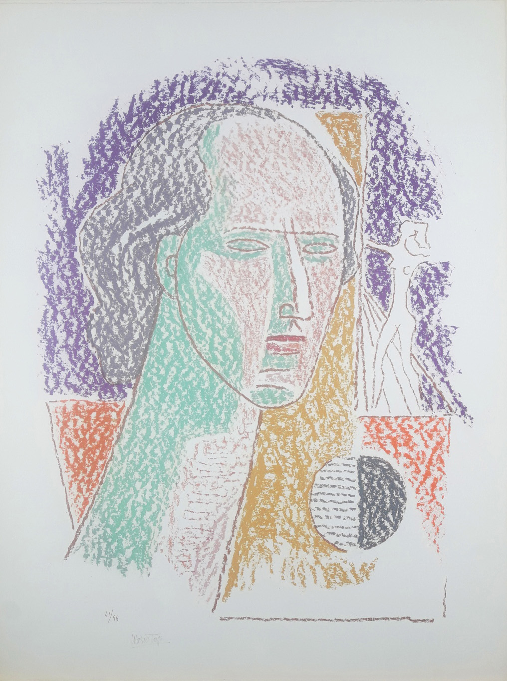 TOZZI MARIO Pesaro 1835-Jean du Gard 1979 “Autoritratto” litografia a 12 colori su cartoncino cm 48x64 del 1974. Firma e tiratura a matita 41/99 sul fronte in basso a destra, a sinistra timbro a secco. Sul retro timbro con descrizione.
