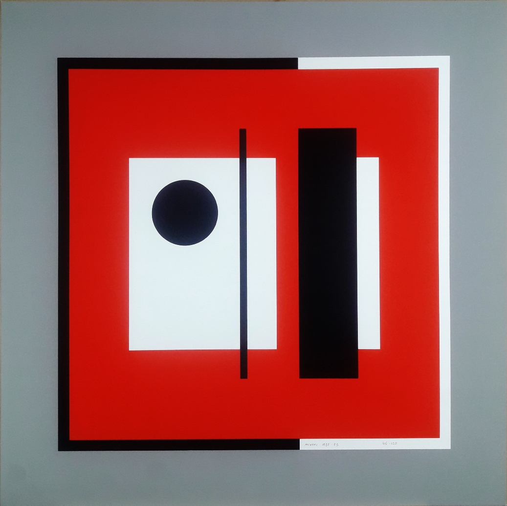 MUNARI BRUNO Milano 1907-1998 “Negativo positivo” serigrafia su cartone fabriano cm 68x68 del 1935/83. Firmata e datata sul fronte in basso al centro, tiratura 46/125 a destra. Facente parte della Cartella “Exacta- dal costruttivismo all’arte sistematica 1918-1885” edita da Squatriti per Galleria Fumagalli.