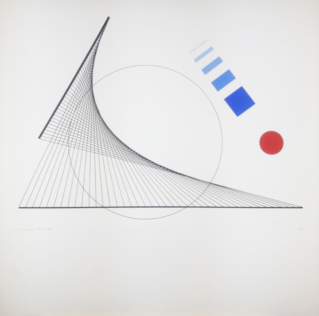 VERONESI LUIGI Milano 1908-1998 “Senza titolo” serigrafia su cartone Fabriano cm 68x68 del 1935/83. Firmata e datata sul fronte in basso a sinistra, tiratura 46/125 a destra. Facente parte della Cartella “Exacta- dal costruttivismo all’arte sistematica 1918-1885” edita da Squatriti per Galleria Fumagalli.